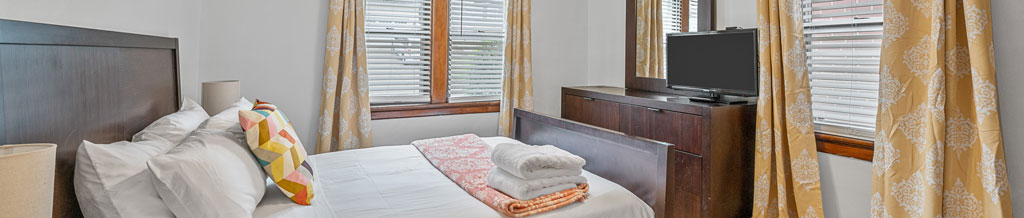 Each bed is adorned with soft, premium linens, ensuring a restful sleep. There’s plenty of storage space to unpack and feel at home. Plus, both bedrooms feature a 30″ Smart TV and a comfortable Queen bed.