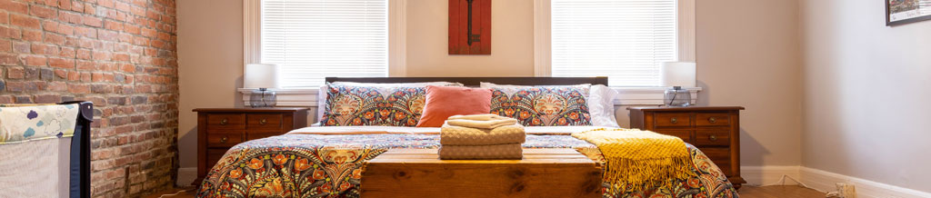 There are two generous bedrooms within the unit, the largest of the bedrooms located all at the far end of the home. It offers a King size bed topped with soft linen and bedding, extra towels, a dresser, a mirror, and an eight-cube storage organizer with plenty of space to unpack and make yourself at home. In addition, a pack-n-play for the little one in tow.