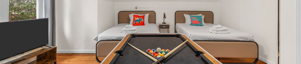Welcome to the jewel of Compton Heights. One of the best preserved historic homes with amazing details, you’ll feel like you live in a Victorian Manor. Well equipped with comfortable and stylish furniture, it is a family-friendly house perfect for 2 or 3 families. You’ll enjoy the modern amenities such as a walk-in shower in the brand new full bathroom downstairs, the large turfed backyard, the playroom with foosball and a pool table upstairs, and the best beds you can dream of. Each bedroom has a TV!