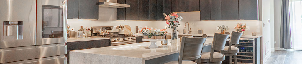 Serve up your meals at the island with seating for three, gather everyone into the elegant dining area for dinner with a table set for 6, or head outside and enjoy a bite or beverage on either of the two private decks!
