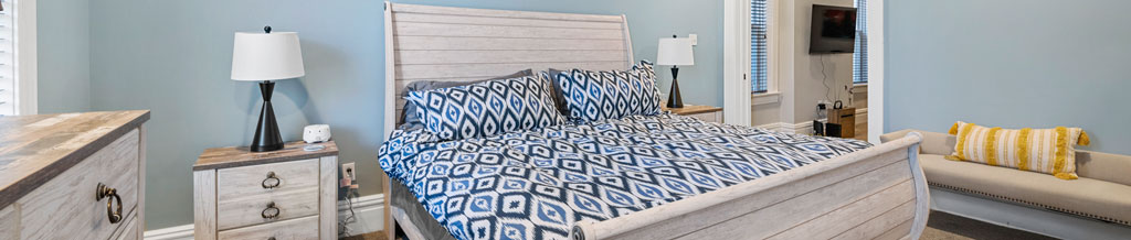 Both of the bedrooms can be found on the second floor. Each bed is topped with soft, premium linen and bedding, and you’ll find plenty of storage to unpack and make yourself home!